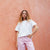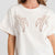 A loose-fitting cream cotton T-shirt with a relaxed, boyfriend silhouette. Designed with a classic round neckline and short sleeves, it’s effortlessly casual and easy to wear. The soft, pleasant fabric adds comfort, while the delicate palm tree embroidery brings a subtle, summery touch. Simple, breathable, and ideal for everyday style.