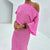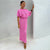 Our best selling Tilly dress in a gorgeous pink colourway! An off the shoulder style that is suited to all bust sizes and the stretchy plisse that works perfectly for bump. The lettuce hem and silver flecks are so underrated and are glisten gorgeously in the sunshine. Pair with heels and a clutch.