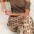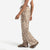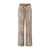 These flowy trousers are made from a lightweight woven fabric featuring a striking leopard print. The design includes a loose fit, an elastic waistband with drawstring, straight wide legs, and welt pockets at the back. The light texture of the fabric adds extra comfort. Perfect for a relaxed yet feminine look. The model is 176 cm and wears size 36.