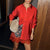Our classic Miley silhouette in a festive Cherry Read, with blouson sleeve and floaty silhouette. A very slight sheerness for a luxe and lightweight feel but solid enough for everyday work wear. We have added contrast tortoise buttons for an extra touch of interest and gorgeous embroidered logo on the back neck. Perfect as a beach cover up, paired with a bikini or thrown over a maeva and styled with some heels for an effortless day to night fit!