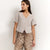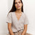 This fitted top features a flattering V-neckline and short sleeves for a classic, feminine look. Crafted from a sturdy knit in a light milk-brown hue, it fastens with buttons down the front — a timeless piece that’s both comfortable and effortlessly chic.